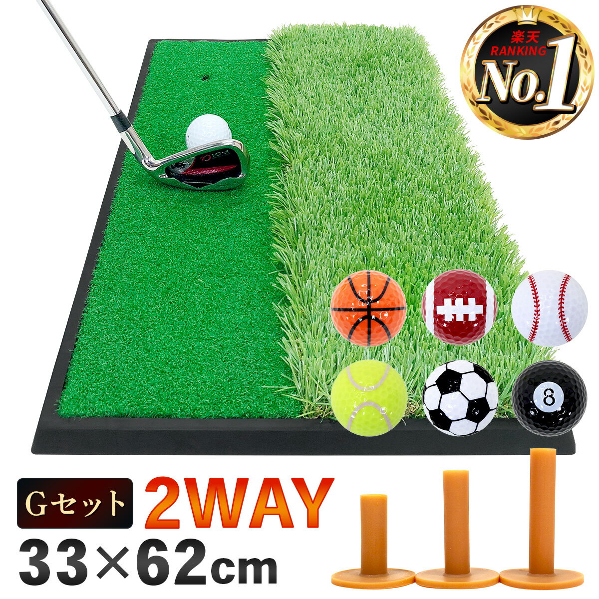 | ゴルフマット ゴルフ 練習 マット 素振り スイング 練習器具 室内 屋外 人工芝 ゴムマット ラフ フェアウェイ 2WAY 33×62cm ゴルフボール ゴルフティー Gセット
